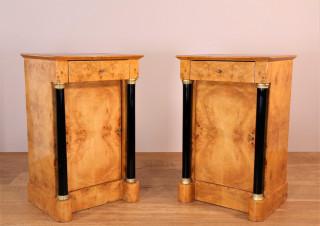 Paar berkenhouten bedkastjes in Empire-stijl,