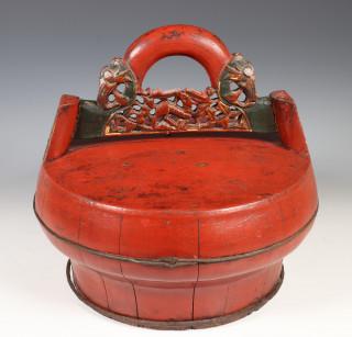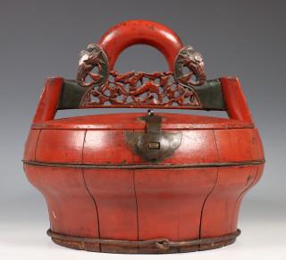 China, rood gelakte houten gekuipte bruidskist, 19e eeuw;