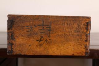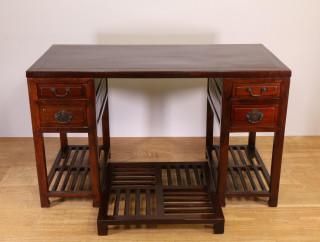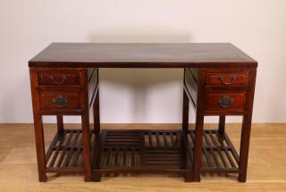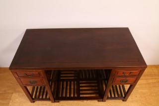 bestaande uit los blad op twee kastjes, ieder met twee laatjes, waartussen los rek