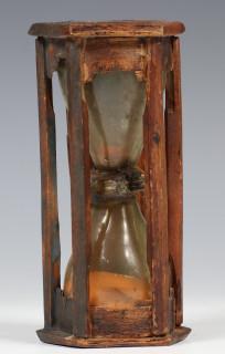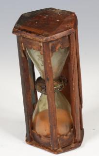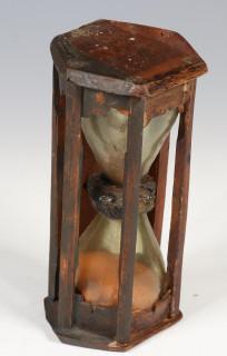 A German sand glass in wooden hexagonal shaped mount, 17th century.
