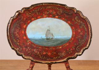 Polychroom beschilderde ovale Hindelooper klap-aan-de-wand, 19e eeuw.
