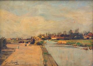 board, gesign. l.o., kleine beschadigingen, 37 x 50 cm.