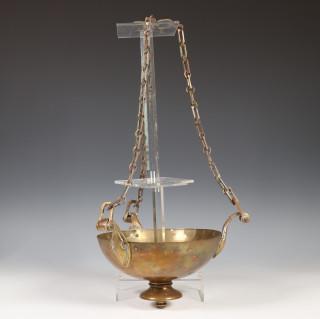 India, bronzen olielamp bekroond door haan. Hierbij godslamp