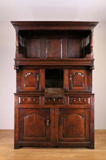 Engeland, driedelige eikenhouten buffetkast, trident, eind 18e eeuw.
