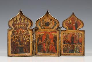 Rusland, ajour messing drieluiks reisikoon, 18e/19e eeuw,