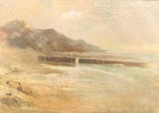 Kustgezicht. Hierbij portret, zittend halfnaakt, gesigneerd O’Connor