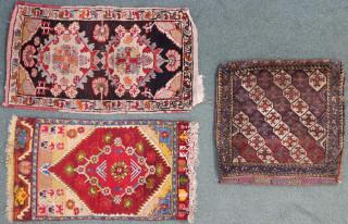 Antique Persian saddle bag , ca. 1880 and two Turkish Yastiks, ca. 1900