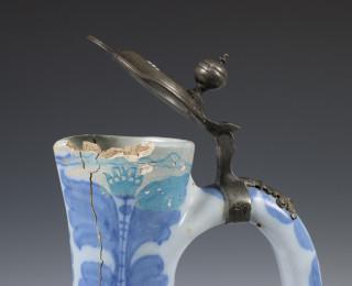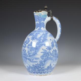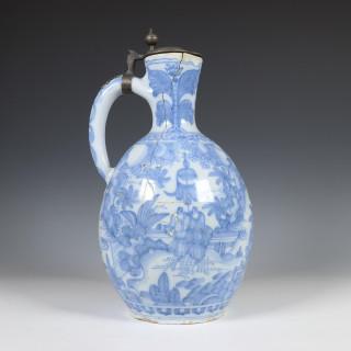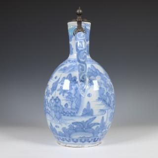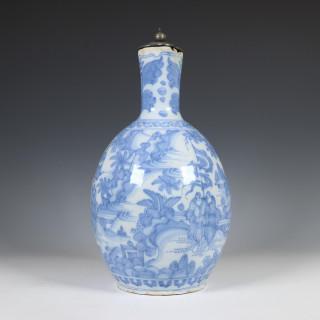 met blauw-wit Wanli decor en tinnen klep (beschadigd)