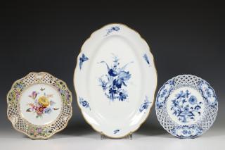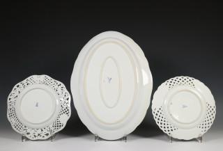 Meissen, ovale porseleinen dienschaal en twee ajour borden, 19e en 20e eeuw
