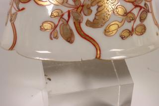 China, a set of five gilt and iron-red-decorated porcelain cups and saucers, 18th century, decorated with a butterfly surrounded by finger citron (hairlines, smal chips)