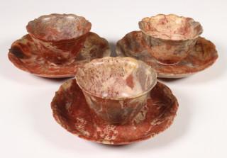China, a set of three soapstone cups and saucers, ca. 1900, with incised gilt floral decoration (chips)