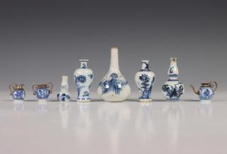 China, een collectie blauw-wit porseleinen miniatuur en poppegoed vaasjes, 18e eeuw en later,