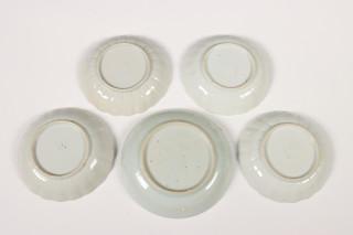 bestaande uit een set van vier gelobde schoteltjes, een enkel schoteltje, zes diverse kopjes en drie lepels (enkel schoteltje hersteld, enkele chips en haarlijnen)