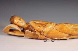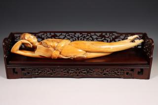China, gestoken ivoren sculptuur van liggende vrouw (doctor's lady), eind 19e eeuw,