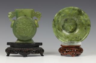 China, nefriet siervaas en groen mosagaat kom, 20e eeuw,