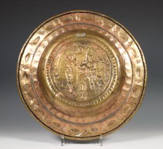 Neurenberg, gedreven en geponste koperen offerandeschotel, 18e eeuw;