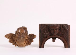 w.o. putti kopjes, en paneel met religieuze voorstelling.