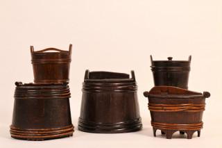 Vijf houten met wilgentenen gekuipte butte's, 19e eeuw.