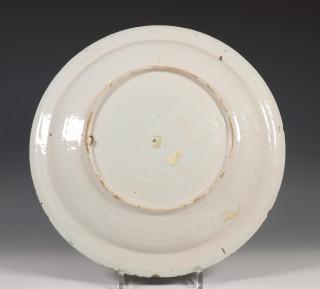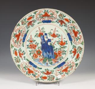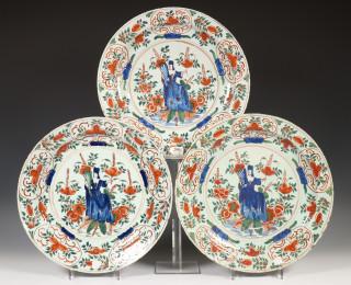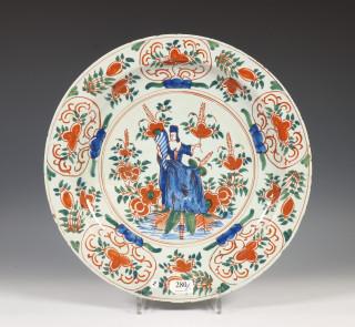 Delft, serie van drie polychroom aardewerk schotels, 18e eeuw,