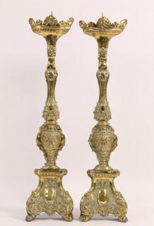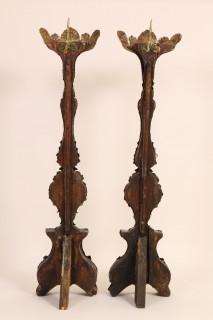 Paar houten-latoenkoperen halve penkandelaars, 18e/19e eeuw,
