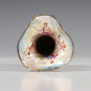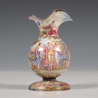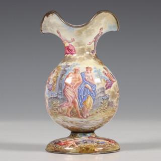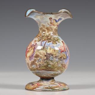 Limoges, geëmailleerd miniatuur vaas met mythologische voorstelling, 19e eeuw;