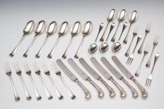 Zes tafel- en zes dessertcouverts en zes pistoolheft messen, 18e eeuw,