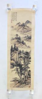 China, scroll print, Huang Junbi, 20th century, decorated with mountainous river landscape, mounted on paper