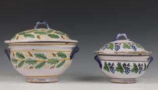 Frankrijk / België, twee ronde aardewerken dekselterrines, 19e eeuw,