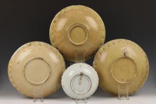 Collectie polychrome aardewerken wandschotels met geschulpte randen, 18e eeuw,
