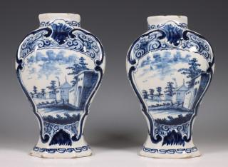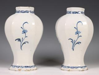 Delft, een paar blauw-wit aardewerken vazen, 18e eeuw,