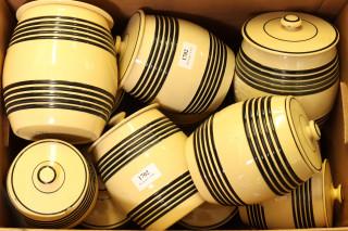 P. Regout, diverse creme aardewerk tonvormige voorraadpotten, ca. 1900,