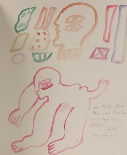 Strip Teeth. Op de eerste bladzijde voorzien van een gesigneerde en gedateerde aquarel. Met zes uitgestanste pochoirdrukken. Boek gesigneerd en genummerd 201/350.