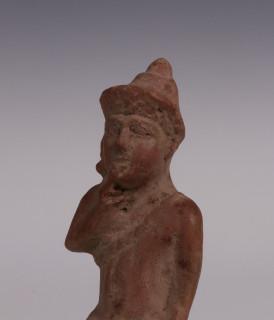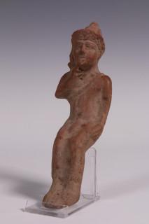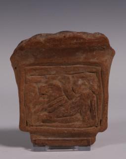 Antique terracotta fragment with relief decoration of a dog and an seated figure, possibly Greek.