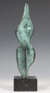 Gloria Pecego (1954); groen gepatineerd bronzen sculptuur; 'Synergism';