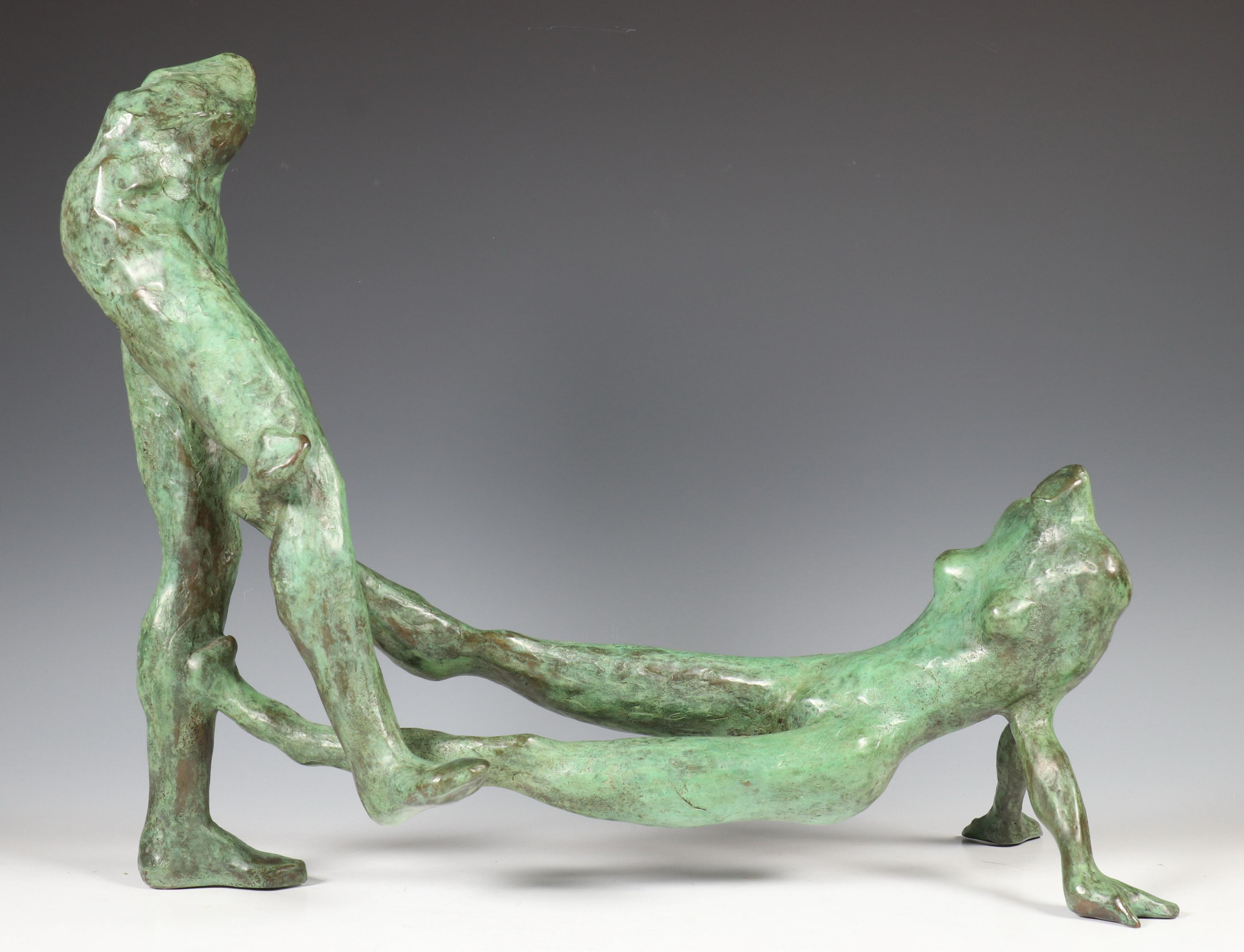 Ronald Tolman (1948), groen gepatineerd bronzen sculptuur, 'Balans'.