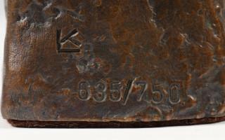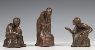 bestaande uit drie bruin gepatineerde sculpturen van oude mannetjes in gesprek. Gesigneerd 'LK' en genummerd 635/750.