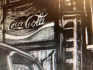 houtskooltekening, niet ingelijst, 185 x 123 cm.