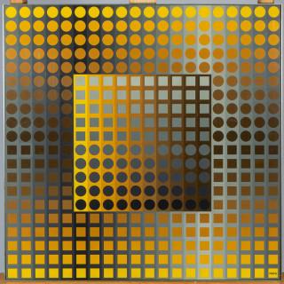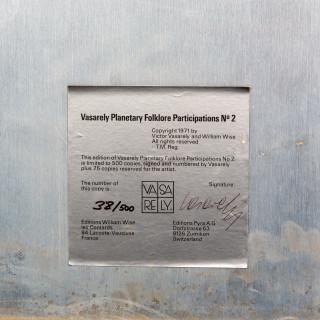 multiple, plastic op metaal, somes scratches, verso gesign., 1971, 38/500, 60 x 60 cm.