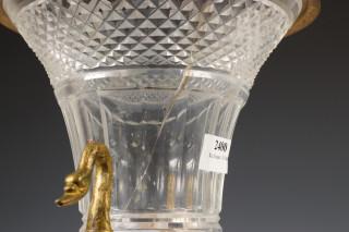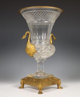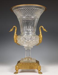 Frankrijk, kristallen geslepen urn met bronzen vuurvergulde monturen, Empire stijl, 19e eeuw;