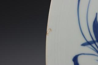 fraai gemodelleerd, met decor van bloesem en lelie bij rotsformatie rondom. Gemerkt met artemisiablad (één met randflintertjes, de ander met restauratie aan de rand)
