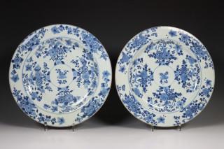 China, paar blauw-wit porseleinen schotels, laat Kangxi, 18e eeuw,
