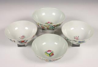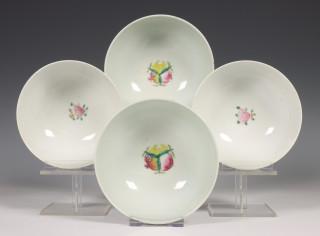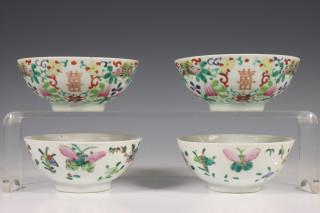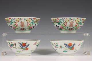 China, twee paar gekleurd porseleinen kommen, laat Qing dynastie,