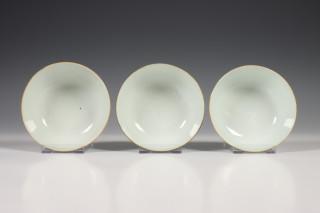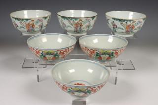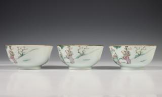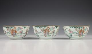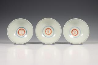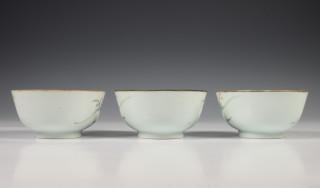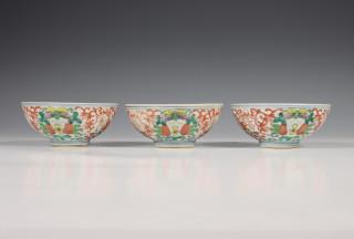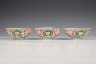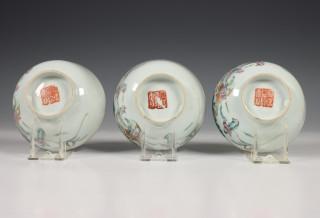 China, twee sets van drie gekleurd porseleinen kommen, laat Qing dynastie,