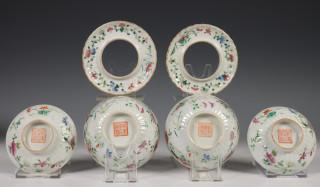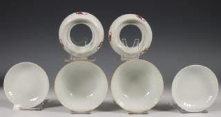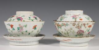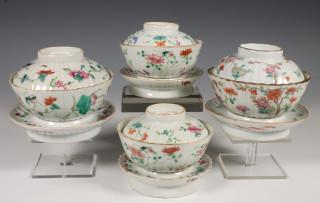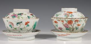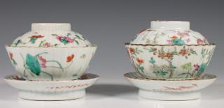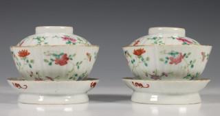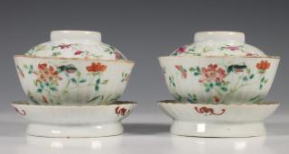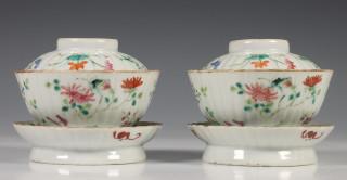 China, twee paar geribde dekselkommen op losse standring, laat Qing dynastie,