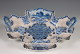 Tichelaar, blauw aardewerk test op onderschotel en twee schotels naar antiek Delfts voorbeeld