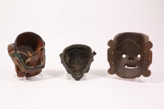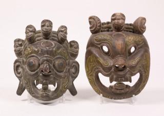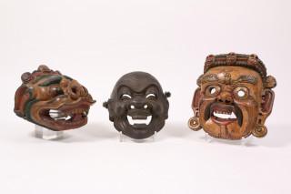 Tibet, collection of four decorative masks and Japan, one mask
