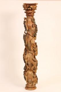Italië, paar houten rijk geornamenteerde corintische zuilen, 19e eeuw,
