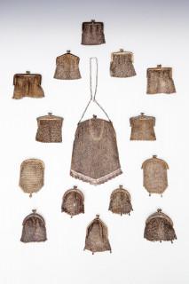 Collectie van veertien maliënkolderbeursjes en een tasje, 19e/en vroeg 20e eeuw,