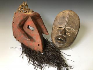 Ivory Coast, Dan, face mask and a West African red painted animal mask.
