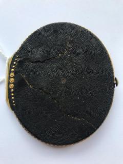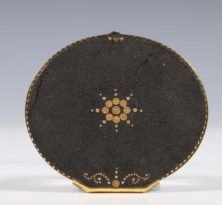 voorstellende een dame met een witte jurk en een roze strik. Gemonteerd in een segrijn foedraal met vergulde monturen. (foedraal beschadigd).